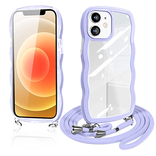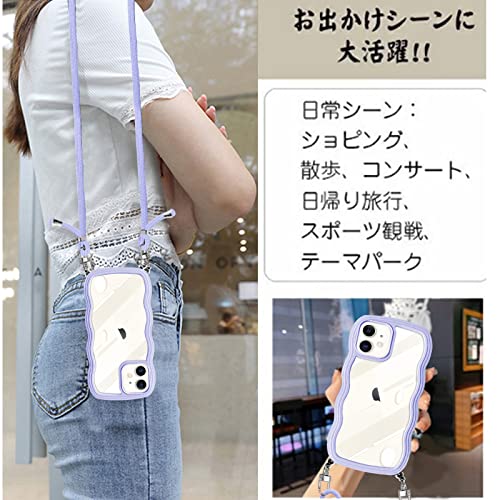 Guokaien 互換性 12 Pro / 12 用の ケース クリア ショルダー いphone 12 12pro スマホケース カバー 透明 TPU ストラップ付き 肩掛け 首掛け 紐付き 斜めがけ 創意 個性 可愛い かわいい 韓国 耐衝撃 アイフォン12Pro(クローブ 紫)