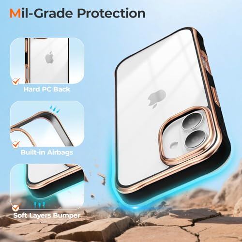 ZTOFERA for iPhone 16 ケース、クリスタルクリアアクリルバック、ソフトメッキエッジ、取り外し可能な電話レンズ、スリム透明バンパーケース for iPhone 16 ブラック