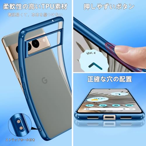 【Fuleeyuhn】Google Pixel 7pro ケース クリア 耐衝撃 黄変防止 耐久性 ピクセル 7pro カバー 透明 TPU素材 薄型 軽量 落下防止 擦り傷防止 スマホケース ストラップホール付き ワイヤレス充電対応 ピクセル 7pro 携帯ケース 6.7インチ(ブルー)