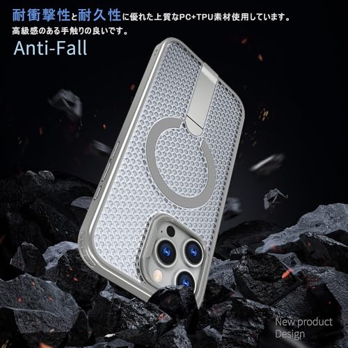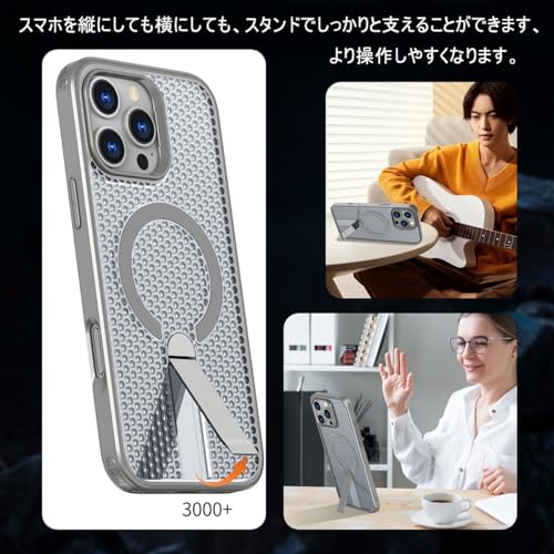 YUZOR for iPhone 16 Pro ケース 冷却 放熱 メッシュ スマホケース MagSafe対応 スタンド付き アイフォン16 Pro カバー 滑り止め 指紋防止 耐衝撃 米軍MIL規格取得 ストラップホール付き 6.3インチ (iPhone16Pro 灰) FX-16Pro-hui