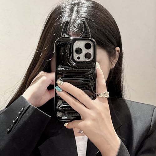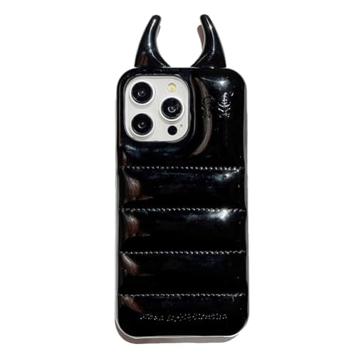 GuoDuo 悪魔の角デザイン スリムフィット iPhone16ケース 個性的で耐久性のある保護カバー 柔らかい防スクラッチ素材 子供やユニークなスタイル好きに最適 iPhone16/15/14/13/12/11 Pro Max対応 アイフォン14(ブラック,iphone14 pro)
