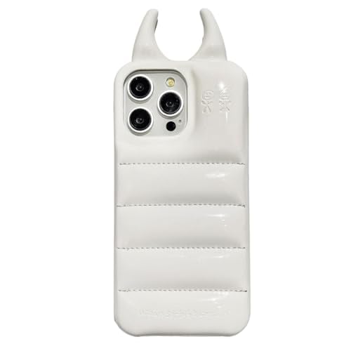 GuoDuo 悪魔の角デザイン スリムフィット iPhone17用ケース 個性的 保護カバー 柔らかい防スクラッチ素材 iPhone16ProMax対応 アイフォン14(白,17 pro)