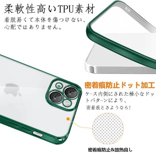 SIG iPhone 14Plus ケース クリア メッキ加工 耐衝撃 薄型 カバー アイホン 14プラスケース 米軍MIL規格 SGS認証 TPU 透明な背面 スマホケース 衝撃吸収 ソフトケース 指紋防止 滑り止め 黄変防止 ストラップホール付き カメラ保護 携帯 6.7インチ用(グリーン)