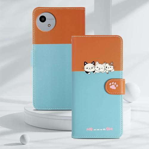 Reddylin 対応 AQUOS Wish4 ケース 手帳型 かわいい猫 アクオスWish4ケース 手帳型 財布型 アクオス ウィッシュ 4 ケース 全面保護 SH-52E ケース 手帳型 AQUOS ウィッシュ 3 ケース カード収納 AQUOS Wish4 スマホケース 手帳型 スタンド機能 AQUOS Wish4 手帳型ケース 6.6インチ 手触りが良い 耐衝撃 -ブルー