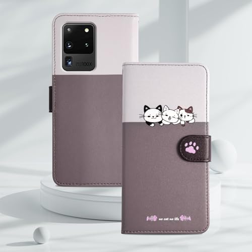 Reddylin 対応 Galaxy S20 Ultra ケース 手帳型 ギャラクシーs20 ultra ケース 手帳型 かわいい猫 Galaxys20 Ultra ケース 手帳型 財布型 全面保護 カード収納 スタンド機能 Galaxy S20 Ultra 手帳型ケース Galaxy S20 Ultra カバー 6.9インチ 手触りが良い 耐衝撃 -ライトコー ヒーカラー