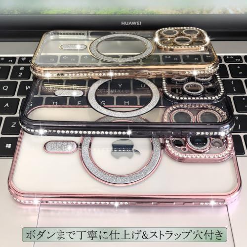 JOOBOY スマホケース 対応 iPhone12 Pro クリア ケース 透明 メッキ加工 Magsafe対応 きらきら ブリンブリン 衝撃吸収 かわいい キラキラ 女性 人気 キャラクター ワイヤレス充電対応 おしゃれ ストラップホール付き アイフォン12プロ 携帯カバー (ブラック, iPhone12 Pro)