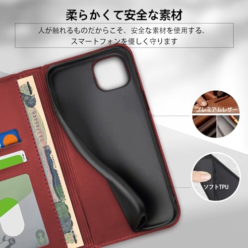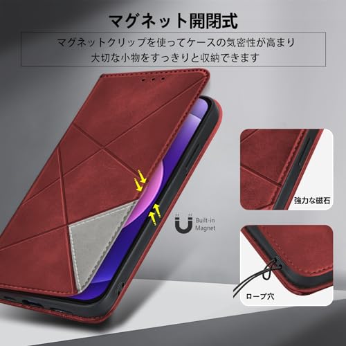 bjnosdv に適合するiPhone 12 ProMax 用のケース 手帳型 高級PUレザー マグネット式 アイフォン12 ProMax 用の財布型 カバー 耐衝撃 スマホケース 横置きスタンド機能 カード収納 小銭入れ レンズ保護 擦り傷防止 落下防止 ストラップホール付き 6.7インチ(レッド)
