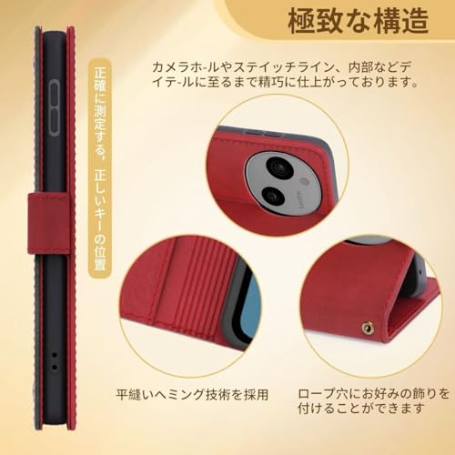 【極致な構造で細部までこだわり】ステッチやカメラホール、内外装の細部に至るまで精巧に作られており、見た目にも高級感があります。フラットシームヘミング技術を採用し、耐久性に優れた仕上がり。カメラホールはスマートフォンのカメラをしっかり保護し。カメラホールは深さがあり、レンズを衝撃から守るだけでなく、写真や動画を撮る際の画質にも影響を与えません。TPUインナーシェル内のボタン配置は正確に設計されており、ケースを装着したままで問題なく操作できます。スムーズで快適な操作感を実現しています。装飾用ロープホールも付いており、お好きなストラップやアクセサリーを取り付けて個性を表現できます。マグネットバックルで簡単に開閉,ケースの内側には強力なマグネットが内蔵されており、閉じるとしっかりとケースが固定されます。ケース内のカードや現金が落ちる心配もありません。また、磁気カードが影響を受けることなく、カードを安全に保管できる設計となっています。