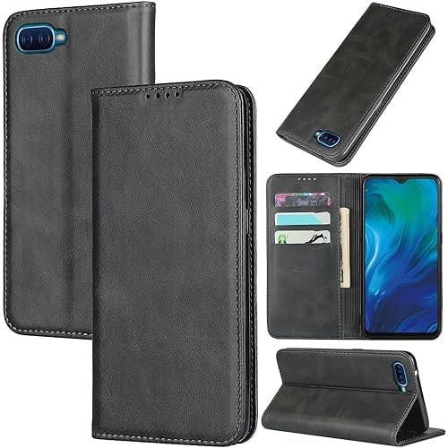 対応 Oppo reno a ケース 手帳型 スマホケース オッポリノa カバー 手帳型 カードスロット、キックスタンド レザー(ブラック)