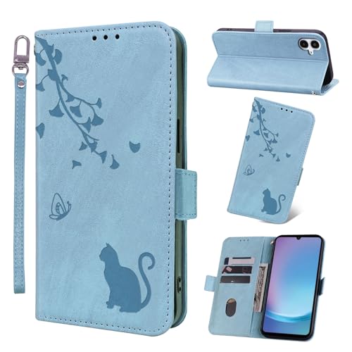 Galaxy A25 5G ケース 手帳型 ギャラクシーA25 5G ケース 手帳型 SC-53F SCG33 カバー ぎゃらくしーA25 携帯カバー 財布型 Galaxy A25 5G スマホケース Jajaful ギャラクシーa25 携帯カバー SC-53F SCG33 手帳型ケース 耐衝撃 スタンド機能 カード収納 PUレザー 軽量 猫 ライトブルー