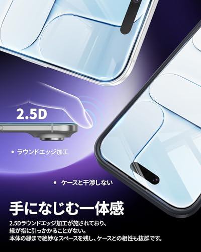 「透過率抜群」iPhone本来の美しい画質を損なうことなく液晶画面をしっかり保護します。フィルム自体は非常に薄くて軽く、透過率も高い商品です。iPhone 17本来の美しい画質をそのままに、超クリアな視覚体験を提供します。貼っていることを忘れるくらい、自然な感覚でアイフォンをお楽しみいただけます。