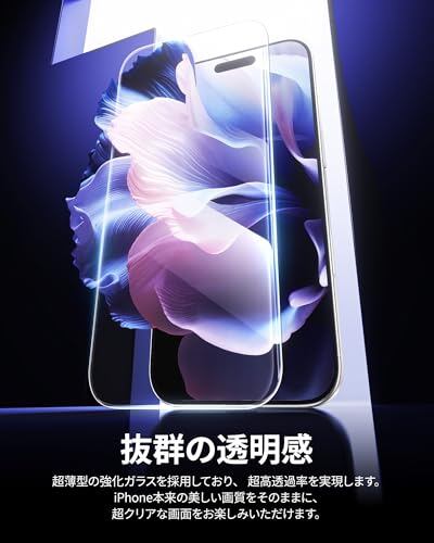 「透過率抜群」iPhone本来の美しい画質を損なうことなく液晶画面をしっかり保護します。フィルム自体は非常に薄くて軽く、透過率も高い商品です。iPhone 17本来の美しい画質をそのままに、超クリアな視覚体験を提供します。貼っていることを忘れるくらい、自然な感覚でアイフォンをお楽しみいただけます。
