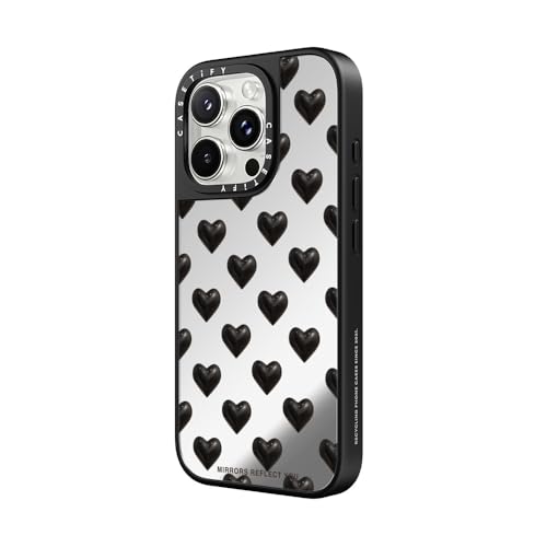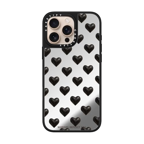 ミラー MagSafe対応 iPhone 16 Pro Max ケース [反射性 / 1.5mからの落下試験をクリア (MIL規格1倍相当) / ワイヤレス充電およびMagsafe対応] - black hearts - クリア ブラック