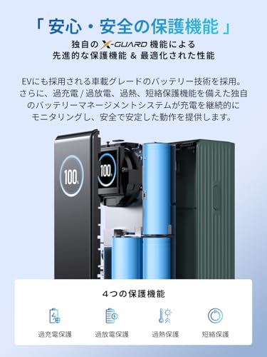 機内持ち込み*もできる25,000mAh大容量. ノートPCなら1~2回、スマホなら4~5回程度充電できる超大容量。リモートワークや出張、旅行など、電源がない環境でもしっかりサポートします。