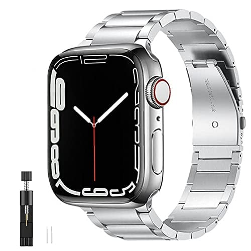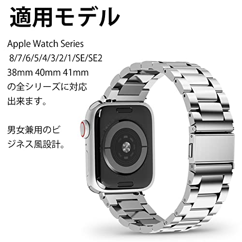 YAODLE Apple Watch バンド 対応 38mm 40mm 41mm/42mm 44mm 45mm 49mm ステンレス アップグレードバージョン アップルウォッチ バンド 金属ベルト 通気 耐腐食性、耐摩耗性 Apple Watch Series 9/8/7/6/SE2/SE/5/4/3/2/1対応 あっぷるうぉっち バンド Apple Watch アクセサリ 長さ調整器具付き(41mm/40mm/38mm,光沢のシルバー)