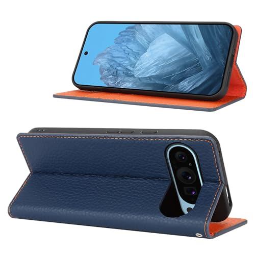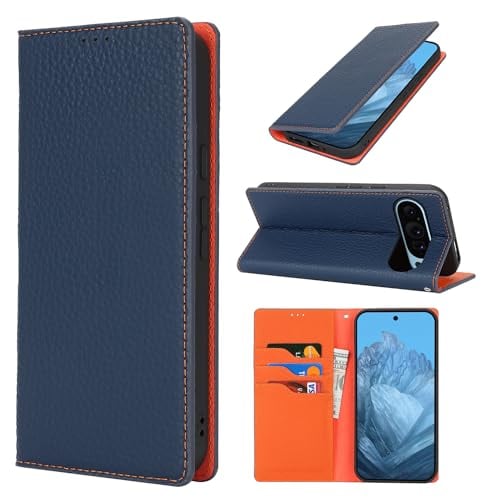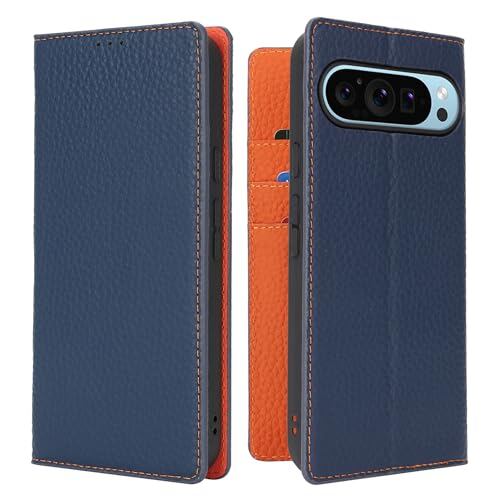 Pelanty for Google Pixel 9 Pro XL ケース手帳型 スマホケース 牛革製品 本革レザー 財布型カバー カード収納 スタンド機能 内蔵マグネット 手作り柔らかい グーグル ピクセル9pro XL 携帯カバー ストラップ付 ヘッドフォンケーブル 耐衝撃 ネイビー