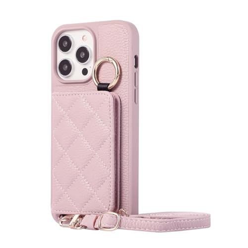 Succtopy iphone13 Pro ケース 手帳型 ショルダー スマホケース いphone13pro ケース 背面手帳型 鏡付き 肩がけ 首掛け 斜め掛け ストラップ着脱可 アイフォン13pro ケース 手帳型 財布付き リング付き 携帯ケース iphone13pro ケース アイフォン13プロ ケース 手帳 マグネット内臓式 カード収納 可愛いチェック柄 カバー(6.1インチ)ライラック