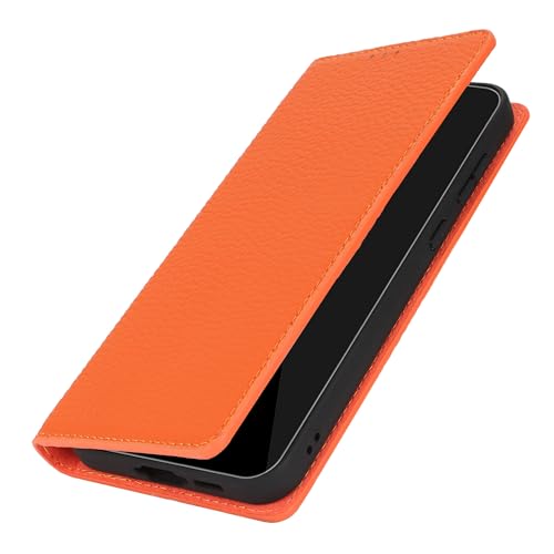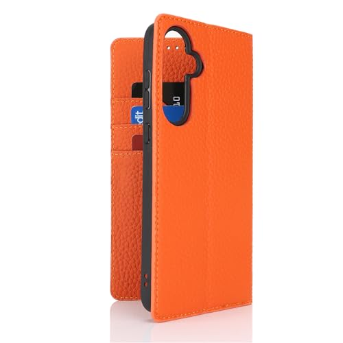 Zouzt Galaxy S25 ケース 手帳型 レザー TPU 牛革 本革レザー 本皮 ストラップ付き カード収納 スタンド マグネット 耐衝撃 オレンジ