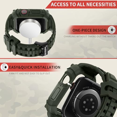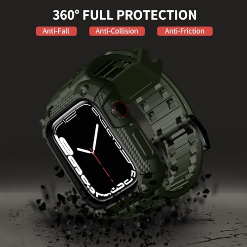 Wristitani Apple Watch バンド 45mm iWatch シリーズ 9/8/7に対応 アップルウォッチ フルカバー 一体型 バンパーケース付き 耐衝撃 TPU 素材 スポーツ アウトドア専用,ミリタリーグリーン