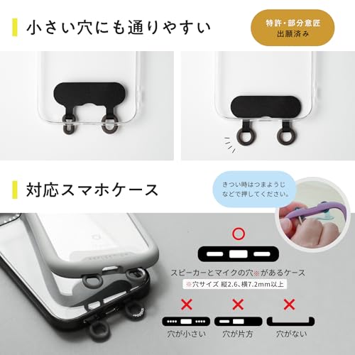 【スマホが回らない・安定感抜群の2点吊り】ダブルリングで支えるダブルリング構造により、斜め掛けしてもスマホがくるっと回転しにくく、画面裏返り防止&安定感◎。ストラップホルダーやストラップシートをお探しの方におすすめの薄型プレートタグで、重たいスマホやiPhoneにも対応。3枚入りでお得に使える携帯アクセサリーです。