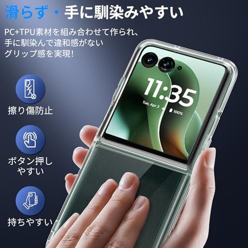 【手に馴染む透明ケース】透き通ったポリカーボネート背面、と側面にグリップ感良いのTPU素材の組み合わせで、滑りにくく手に馴染みやすくて使い心地は抜群。また、人間工学に基づく一体化設計により、手にぴったりとフィットするようにちょうどよい厚さにして、抜群な握り心地を実現!