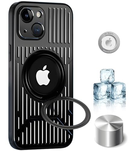YUZOR iPhone 13 用 ケース アルミ合金 360°回転するリングスタンド 冷却 放熱 スマホケース マグネット搭載 耐衝撃 米軍保護工学・Magsafe対応 アイフォン13 カバー ストラップホールあり 6.1インチ (iPhone13 黒) JSZJ-13-hei