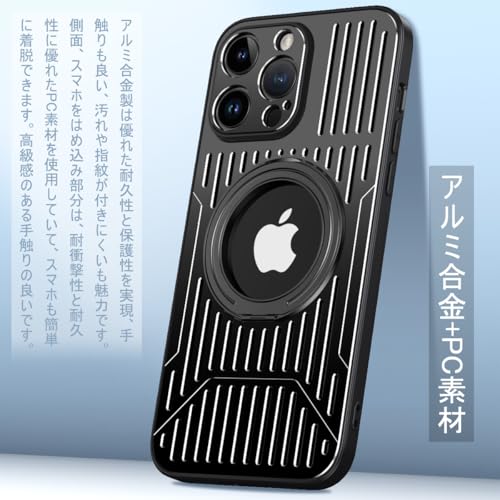 YUZOR iPhone 12ProMax 用 ケース アルミ合金 360°回転するリングスタンド 冷却 放熱 スマホケース マグネット搭載 耐衝撃 米軍保護工学・Magsafe対応 アイフォン12ProMax カバー ストラップホールあり 6.7インチ (iPhone12ProMax 黒) JSZJ-12ProMax-hei
