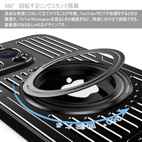 【マグネット搭載+リングスタンド搭載】マグネット搭載、360°回転するリングスタンド搭載、自由な角度にひねって立てかけることが可能。YouTubeやビデオ会議をするときは横置き、TikTokやInstagramを見るときは縦置きなど、用途に合わせて調整できる、高級感のあるおしゃれなデザインです。