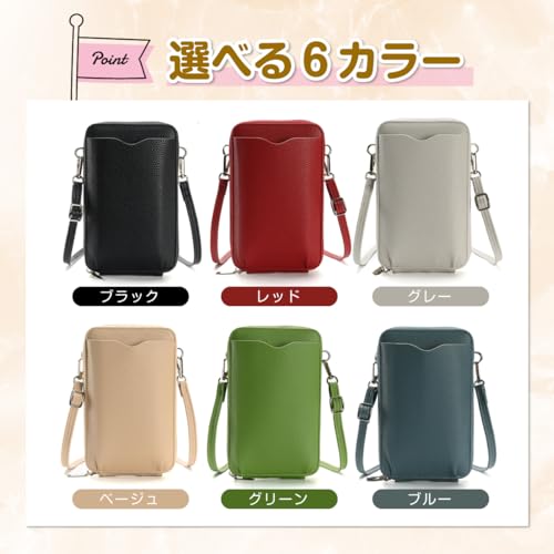 grooblue スマホポーチ 縦型 ショルダーバッグ レディース スマホポシェット 携帯ポーチ 斜め掛け シンプル レザー調 軽量 お出かけ用 グリーン