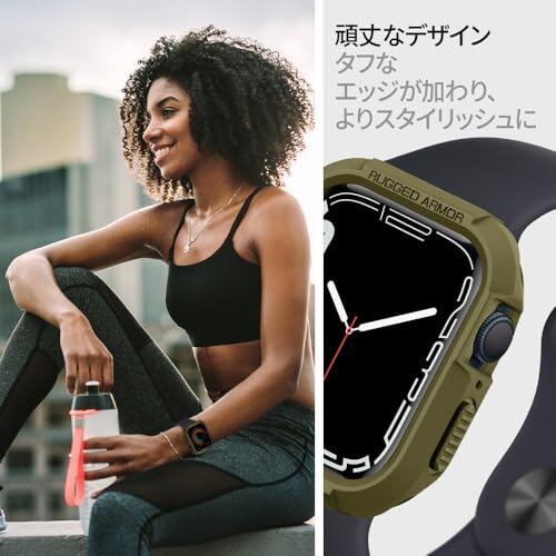 Spigen Apple Watch ケース 45mm 44mm【Apple Watch SE3/9/8/7/SE2/SE/6/5/4 対応】落下 衝撃 吸収 タフネスデザイン すり傷 防止 耐衝撃 保護カバー ラギッド・アーマー 062CS26015 (オリーブ・グリーン)