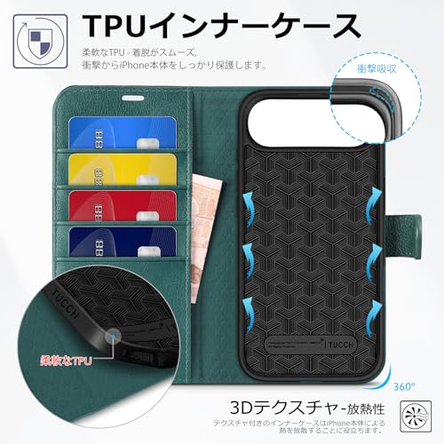 TUCCH iPhone Air 対応ケース手帳型 6.5インチ 4つカードポケット付き 横置きスタンド ストラップホール付き 機能 RFIDブロッキング 耐衝撃 全面保護 マグネット式 TPU素材 PU合皮 あいふぉん Air 対応カバー 2025年発売 テクスチャー ティールブルー