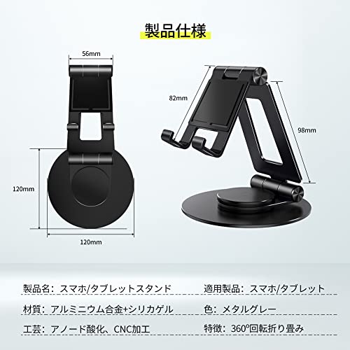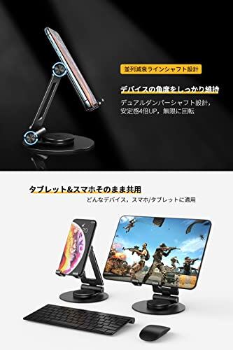 ➤【360°回転スタンド】2軸で自由な角度調整可能です。 台座が360度回転するため、スマートフォンやタブレットを乗せたまま、思いのままに回転、最適な角度に調整して 見せたい向きに自由に回転させることが出来ます。また、角度調整可能で、自分に合った快適な視点を選ぶことができます。