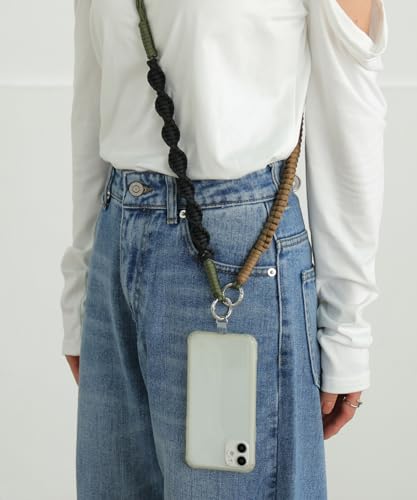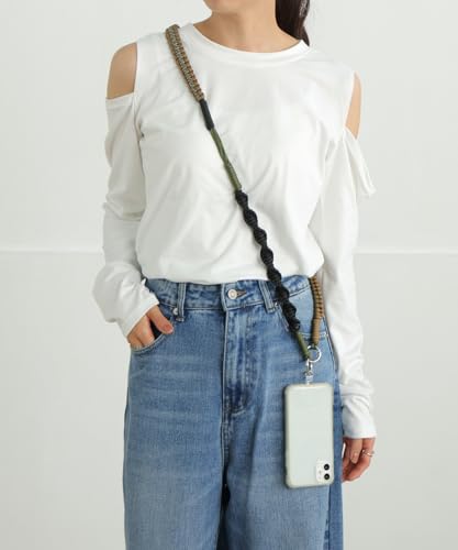 [アルトローズ] ブラック 配色ロープ ストラップ スマホショルダー スマホストラップ ショルダーストラップ ストラップホルダー 編み紐 斜めがけ 肩掛け 首掛け 調節可能 編み込み 簡単 401490-01