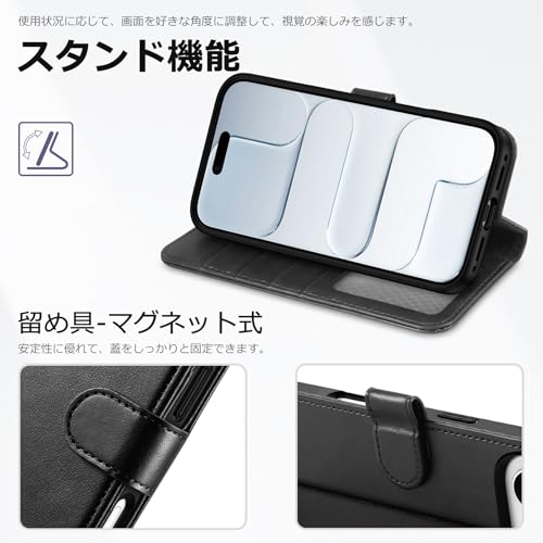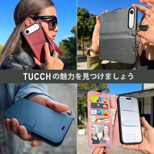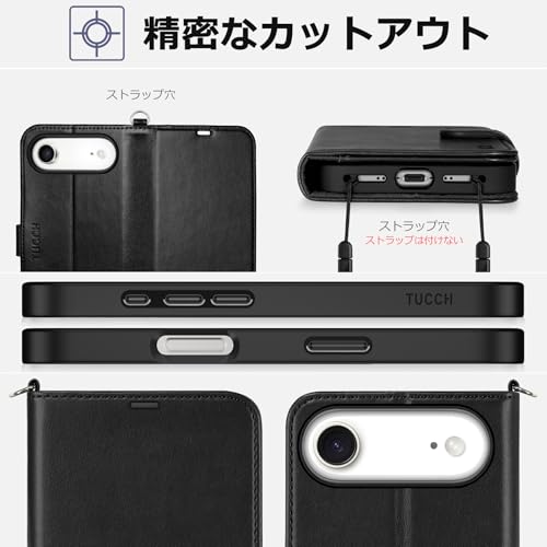 TUCCH iphone Air 対応 ケース 手帳型 ストラップ付き 6.5インチ 4つカード収納 RFIDブロッキング 横置きキックスタンド機能 TPU素材 PU合皮 全面保護 衝撃吸収 アイフォン Air対応 携帯カバー 2025年発売 ブラック
