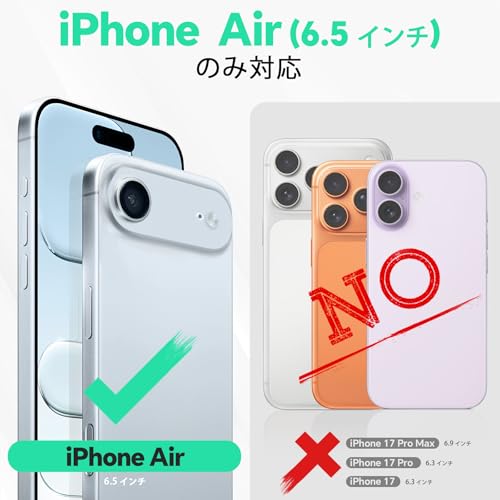【対応機種】アイフォーン Air (2025年発売6.5インチ)にのみ対応します、他の機種には対応しません。ご注意:各機種のサイドボタン、カメラの位置は少しズレてしまう可能性があるため、ケースを選んで買う時、ご携帯の機種を十分ご確認の上、ご注文頂きますようお願い申し上げます。