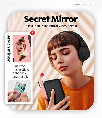 【ミラーシール付き】背面カバーの内側に鏡を貼り付けることで、いつでも便利に使えます。(※ ご使用する前に傷防止フィルムを剥がしてください。)