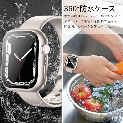 YUGYUG 対応 アップルウォッチ カバー Series SE3/SE2/SE/6/5/4 アップルウォッチ ケース PC素材 IP68 防水 360ど度 Apple Watch ケース ガラスフィルム 一体型 日本旭硝子材 二重構造 Apple Watch カバー 全面保護 強化ガラス キズ防止(44mm,スターライト)