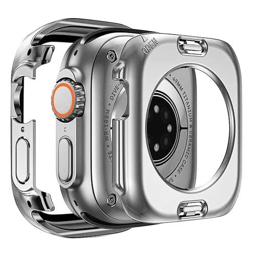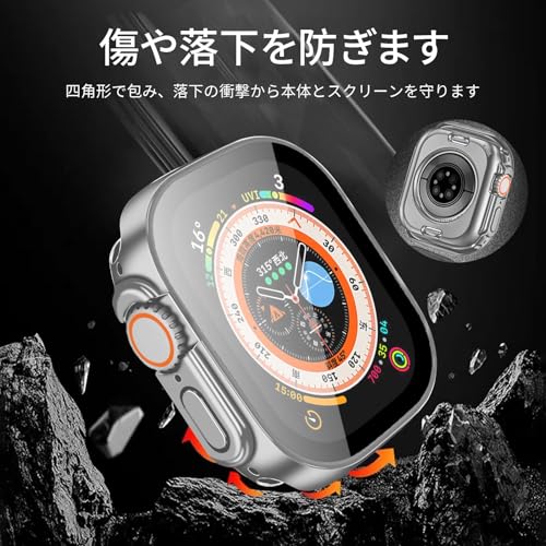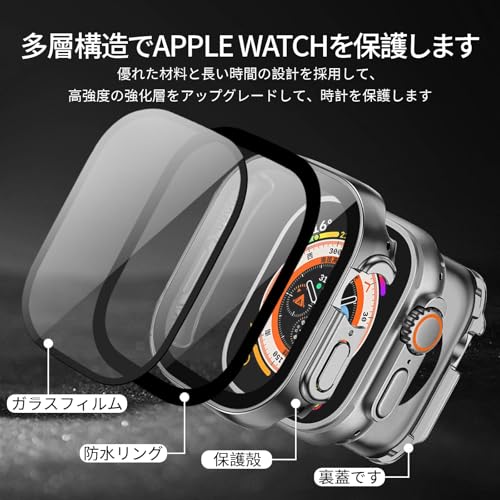 YUGYUG 対応 アップルウォッチ カバー Ultra 3/2/1 アップルウォッチ ケース PC素材 IP68 防水 360ど度 Apple Watch ケース ガラスフィルム 一体型 日本旭硝子材 二重構造 Apple Watch カバー 全面保護 強化ガラス キズ防止(49mm,シルバー)
