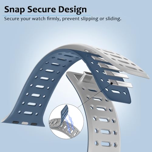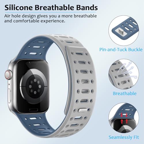 [Amizee] コンパチブル アップルウォッチ マグネチッ バンド 49/46/45/44/42/41/40/38mm ソフトシリコン通気性ストラップ Ultra 3/2/1 シリーズ 11 10 9 8 7 6 5 4 SE3/2/1 用(グレー/ブルー, 38mm/40mm/41mm/42mm)