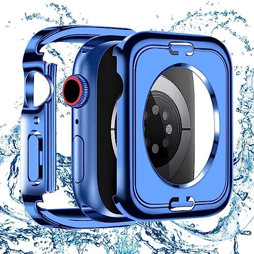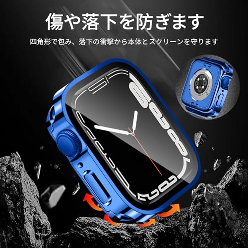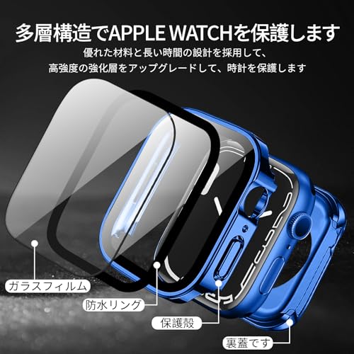 YUGYUG 対応 Apple Watch ケース Series 11/10/9/8/7/SE3/SE2/SE/6/5/4 Ultra 3/2/1 Apple Watch カバー PC素材 耐衝撃 防塵 スポーツ 軽量 IP68 防水 360ど度 3D直角エッジデザイン 光沢式 アップルウォッチ ケース 二重構造 アップルウォッチ カバー 全面保護 強化ガラス キズ防止(42mm,ブルー)