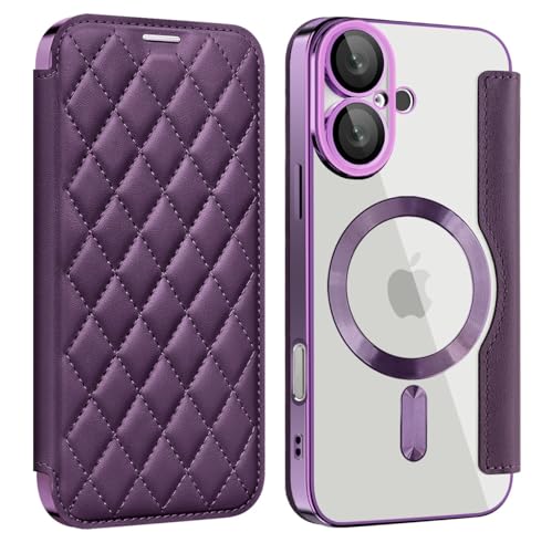 iPhone 16 Plus ケース 手帳型 MagSafe対応 キルティング 背面透明 クリア 可愛い 女性 手帳 iPhone16 プラス ケース チェエック 格子柄 ゴージャス カード収納 財布型,紫