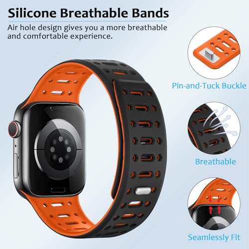 [Amizee] コンパチブル アップルウォッチ マグネチッ バンド 49/46/45/44/42/41/40/38mm ソフトシリコン通気性ストラップ Ultra 3/2/1 シリーズ 11 10 9 8 7 6 5 4 SE3/2/1 用(ブラック/オレンジ, 38mm/40mm/41mm/42mm)