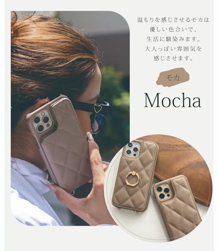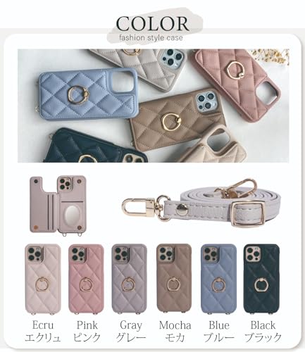 Liisea for いphone13 proとの互換性あり ケース ショルダー 13proケース ショルダー キルティング スマホケース 背面 カード収納 耐衝撃13プロ リング付き おしゃれ スタンド リング付き 落下防止 可愛い 肩掛け 斜めかけ ミラー付き マトラッセ 携帯 スマホ カバー カード入れ iphone13proとの互換性あり
