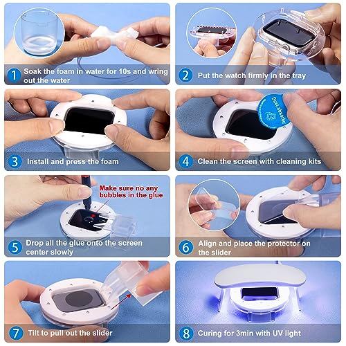 自動分散技術 - 当社の革新的な技術により、apple watch 9/8 保護ガラスフィルムーはApple Watch 41mmスクリーンに瞬時に密着し、硬化した浸透性のバリアを形成し、周囲の亀裂や不完全な部分を最大限に修復して気泡の形成を防ぎ、あなたの施工経験を大幅に最適化することが可能です。