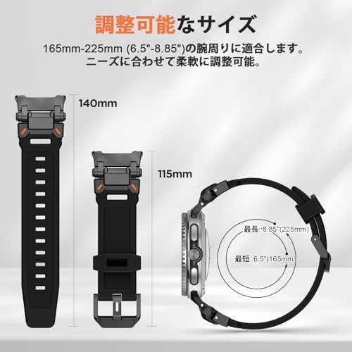 ✔ 頑丈なスポーツ用ラバーバンド:Galaxy Watch 8専用バンドとして設計された柔軟なステンレススチール製コネクターは回転式で、165mm~225mm(6.5インチ~8.85インチ)の腕周りに完璧にフィットします。Galaxy Watch 8用ストラップは高品質シリコンと耐傷性スチールを組み合わせ、ジムでのトレーニング、ハイキング、ビジネスミーティングなどあらゆるシーンで耐久性を発揮します。
