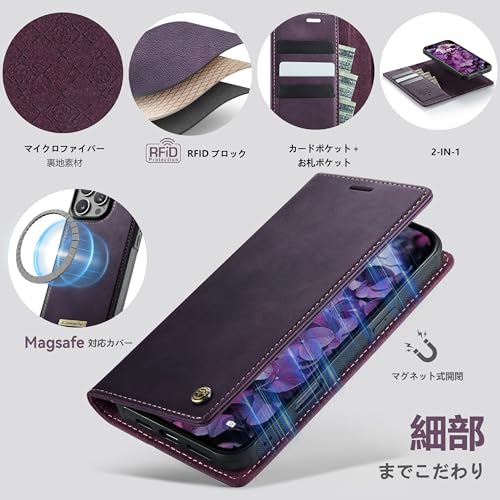 Sanlinba iPhone 15pro max ケース 手帳型 2in1 分離式 背面カード収納 レザー RFIDブロック MagSafe対応 耐衝撃 スタンド機能 横置き マグネット開閉 エッジ滑り止め 指紋防止 全面保護