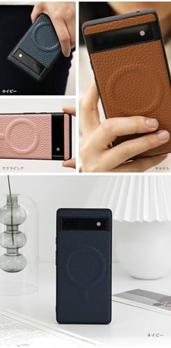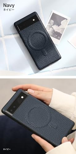 シュリンクレザー 本革 スマホケース GooglePixel用 9 Pro 互換性 MagSafe 対応ケース ストラップ (ネイビー)