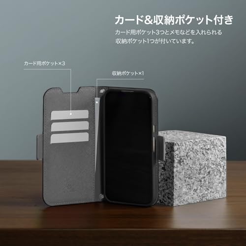 【製品特徴】… ◆ ストラップホール : あり(2ヶ所) ◆ Qi ワイヤレス充電 : 対応(機器によって非対応の場合あり) ◆ 装着時の本体色 : 見えない ◆ カード収納 : あり(3枚) ◆ 留め具 : あり (サイド マグネット 式) ◆ スタンド機能 : あり ◆ ガラスフィルム互換性 : メーカーにより一部非対応 ◆ ケースをつけたまま撮影 : 可能 ◆ ご注意 : ※ストラップホールを使用の際は、ストラップを持って振り回したり、無理に引っ張ったリしないでください。