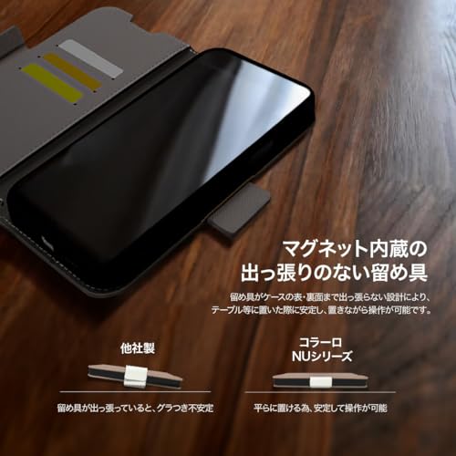 【製品特徴】… ◆ スマホリング装着 : 非対応 ◆ ストラップホール : あり(2ヶ所) ◆ Qi ワイヤレス充電 : 対応(機器によって非対応の場合あり) ◆ カード収納 : あり(3枚) ◆ 留め具 : あり(サイド マグネット 式) ◆ スタンド機能 : あり ◆ ガラスフィルム互換性 : 対応(メーカーにより一部非対応) ◆ ケースをつけたまま撮影 : 可能 ◆ ご注意1 : ※ストラップホールを使用の際は、ストラップを持って振り回したり、無理に引っ張ったリしないでください。 ◆ ご注意2 : ※照明の関係、パソコン・スマートフォン等の環境により、実際の商品と色味が違って見える場合がございます。