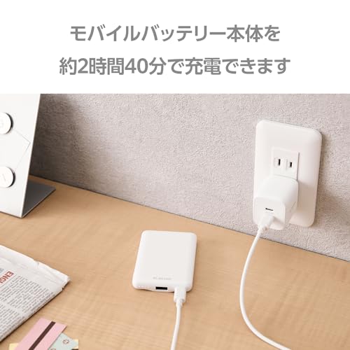 エレコム モバイルバッテリー 軽量 小型 薄型 5000mAh 15W 5V 3A Type-C USB-A ケーブル付属 【 iPhone15 / SE3 など対応】 ホワイト DE-C45-5000WH